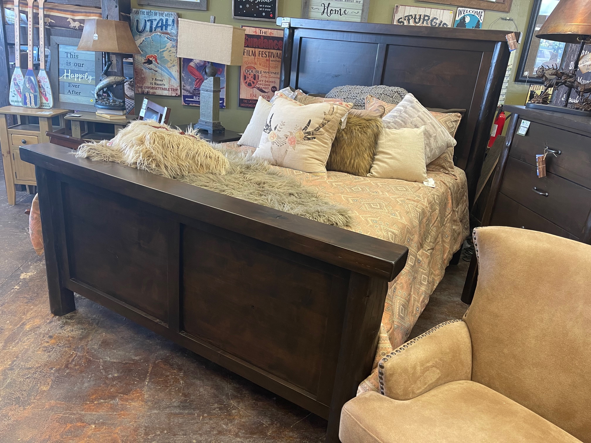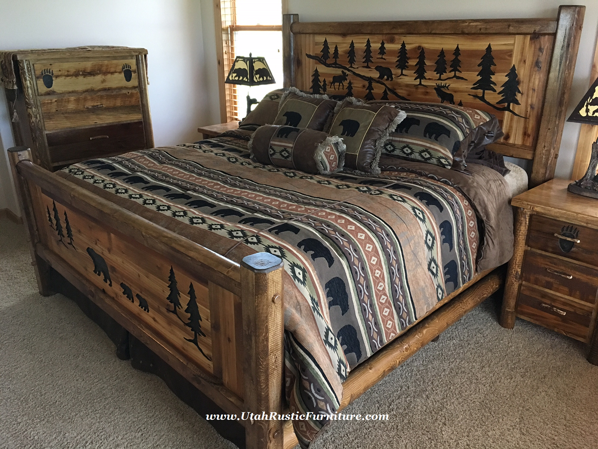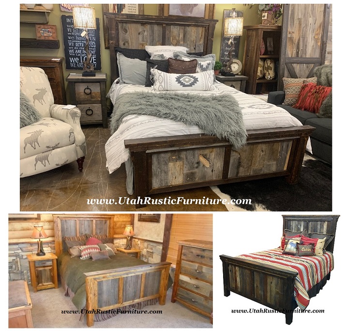 Rustic Barnwood and Log Beds Bradley's features the highest quality rustic log, barnwood, and lodge traditional beds. The beds on the left column below are made here in Utah by custom builders that will let you make any tweaks or changes you desire including sizes and stain options to your final bedroom set! The right column features rustic collections made primarily in North America that feature distressed or hardwood solids and a more tailored look. For any custom pricing or questions, call or email: 801-484-1007 or orders@utahrusticfurniture.com |