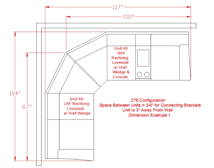 Sectional as shown NOW $1699 104"LAF 117" RAF w x 44 d x 38" h*