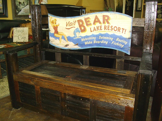 Rustic Solid Redwood Bear Lake Resort Bench With Storage (Signs are Interchangable!) $699