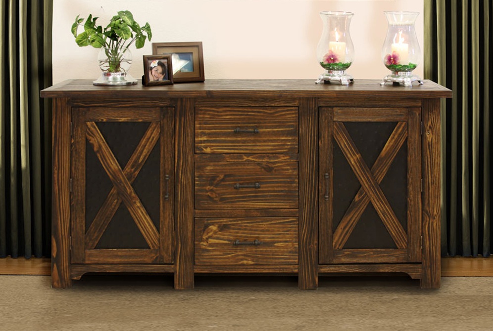 Rustic look is enhanced with attractive “X” motif on headboard, footboard and top row of drawers