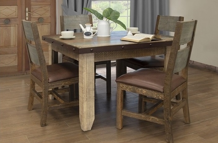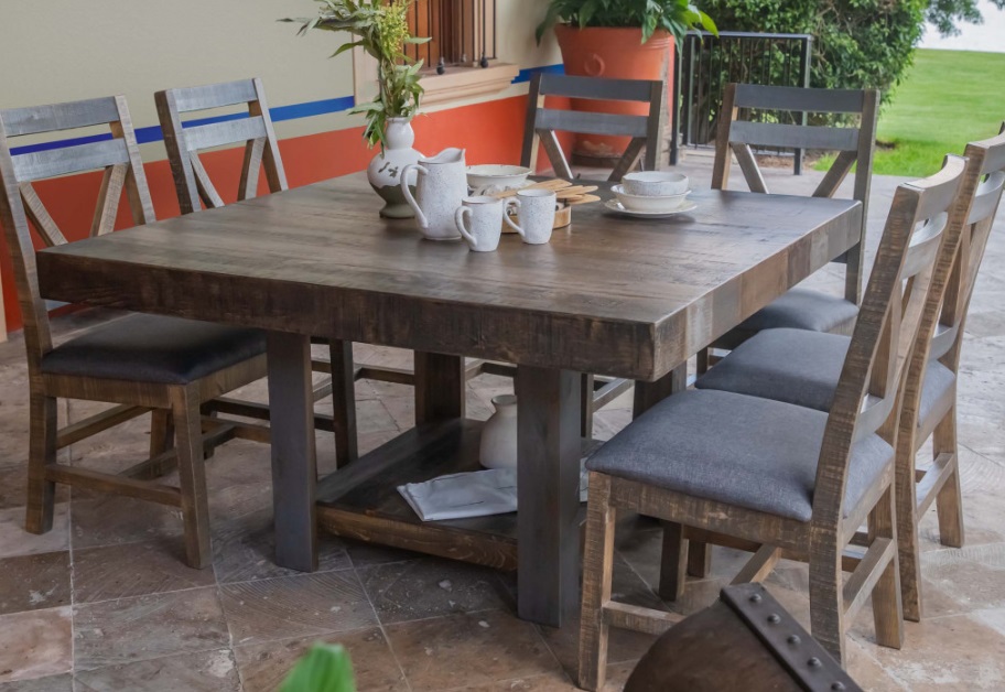 Collection made of Real Wood Rough Sawn to Simulate Barnwood -Smaller or Rectangle Dining Table On Display