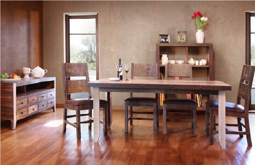 Collection made of Real Wood Rough Sawn to Simulate Barnwood -Dining Table On Display