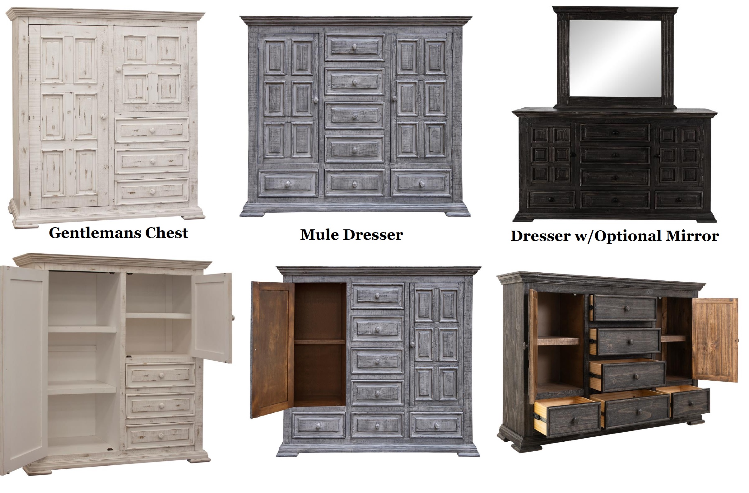 Terra Collection Available in Distressed Dark, Distressed Walnut, Distressed Grey, or Antiqued White