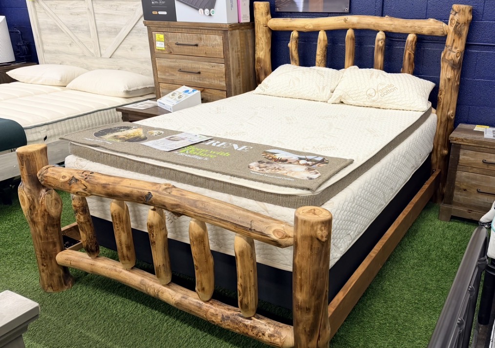 The Utah Aspen Collection is one of our top sellers due to its unique character, solid build, and one-of-a-kind style. Aspen is a great wood to use for furniture because it doesn't contain resin, is incredibly tough in that it's a hardwood, and has great longevity. The wood resists splitting when nailing or screwing, is odorless, and glues well. Aspen is also desired for its natural curving and twisting. Because of this, it is more labor intensive as each individual log is prepped