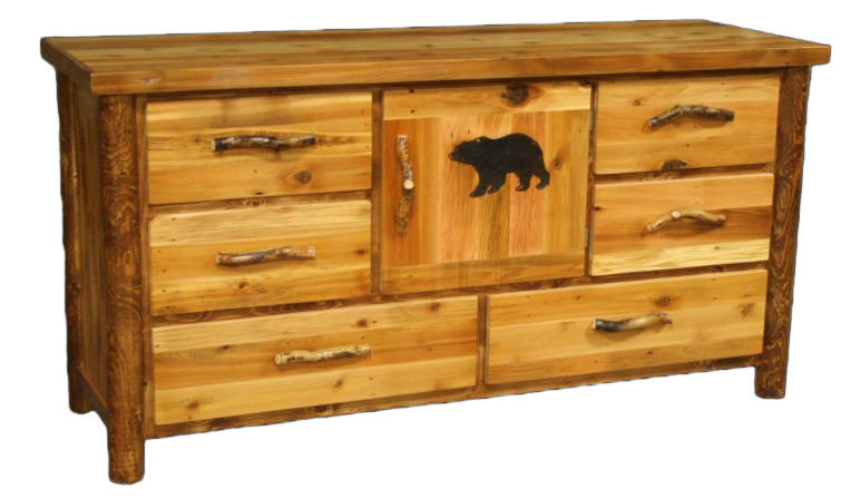 Add $100 for 4 Pine Tree, Bear Paw, or Moose/Elk Hoof Carvings on the top drawers or $120 for Bears.