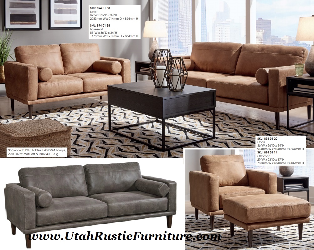 Benchcraft Arroyo #894 Caramel or Smoke Distressed Microfiber Sofa Set or Sofa Chaise