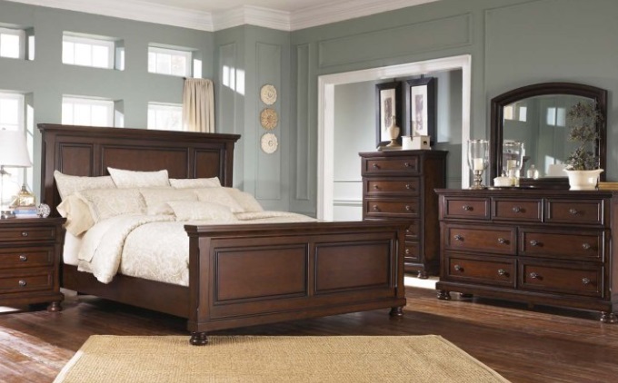 -Available in B719 Flynnter Walnut Stain (Top), 697 Porter Dark Cherry Stain (Bottom Left- On this color you must do the storage drws with the sleigh headboard together or the panel footboard and headboard together),