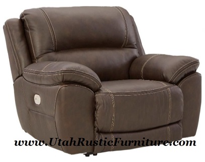 The tailored design of the Dunleith collection features the comfortable feel of padded arms, divided bustle back cushioning, double baseball stitching, and extra wide chaise pad seating perfect for any relaxing living room environment. The subtle two-tone effect enhances color depth and vibrancy. Top Grain Leather is perfect for active households. Also the end pieces and optional armless chairs of the sectional feature Power Upgrades. This model features a metal drop-in unitized seat box for strength and durability plus an all metal construction to the floor for strength and durability. The reclining mechanism features infinite positions for comfort and "zero wall technology" - place it within 4 inches of any wall and recline to the furthest position without touching!