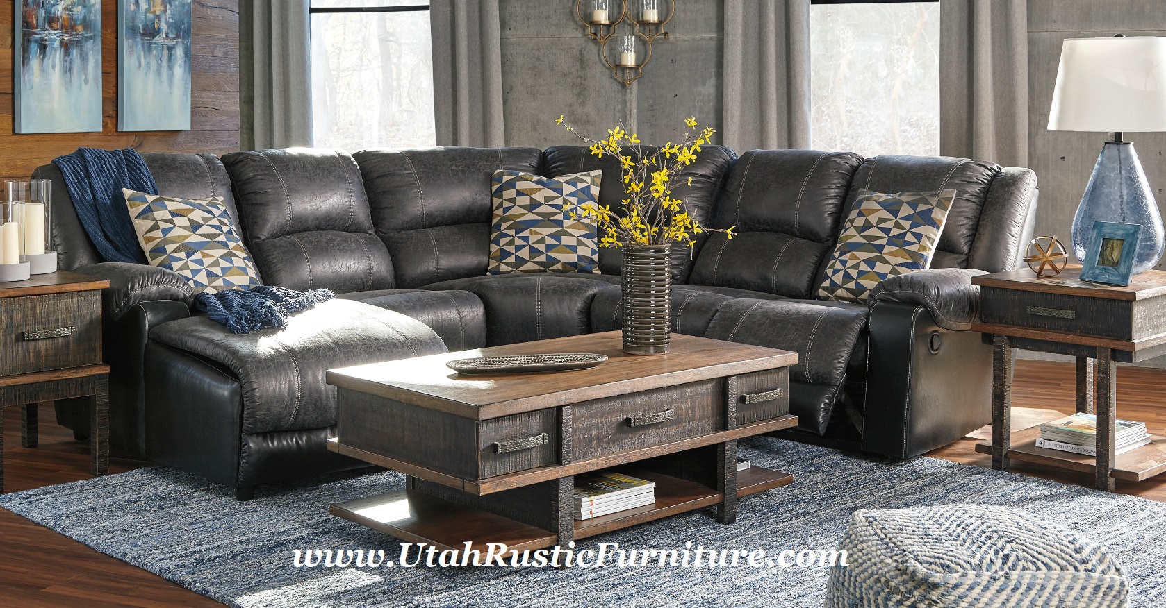 #343 New Gen Distressed Microfiber Combo Sectional - Includes 2 Power End Recliners