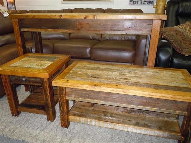 Log and Rustic Sofa Tables, End, and Cocktail Tables Below are just a few of our available collections. Many of these pieces are made custom to order, and available with different handles, stains, metal accents, and even laser engraved slate scenes. Every top surface, exposed sides, and posts are made of durable Barnwood or Log Solids and are designed to last a lifetime! We feature some of the lowest prices in the nation on our log furniture because they are locally made from wood harvested in the Rocky Mountains. Call or email with any questions on options, custom dimension quotes, or to place an order. |