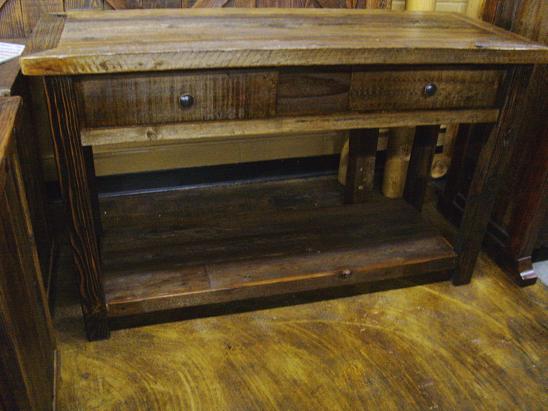 Barnwood Big 5 Rough Cut Sofa Table w/Drws & Shelf