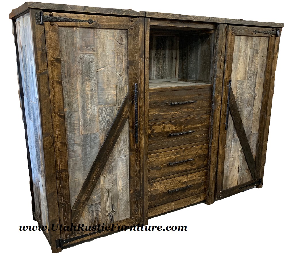 Snow Fence Rough Cut Distressed Wood w/Metal Accents and a Middle Chest- Wall Cabinet