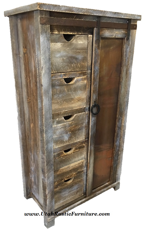Western Plains Barnwood Custom Metal Sliding Door Gentleman's Chest - Custom Colors and Dimensions Avail. on Request