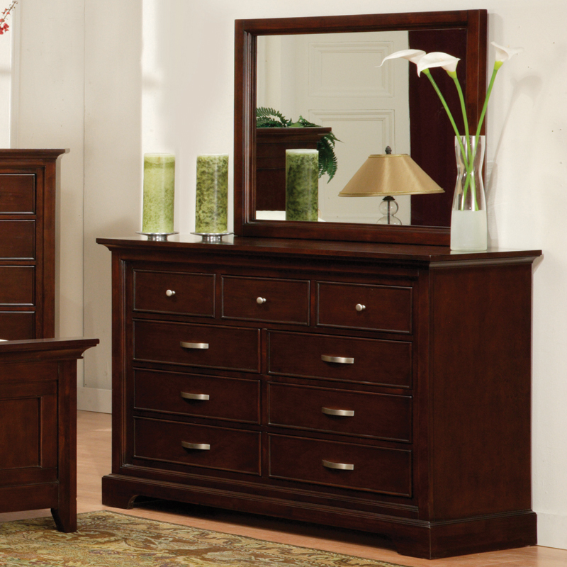 The beauty of the Glamour Collection lies in the simple lines and style. The panel headboard and footboard feature a metal grid pattern to give your bedroom suite an added touch of characteristic. Cherry veneers and select hardwoods in espresso finish with bold hardware accent give the Glamour Collection a desired look to your home decor.