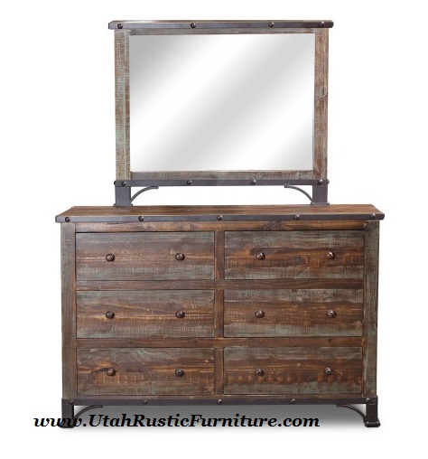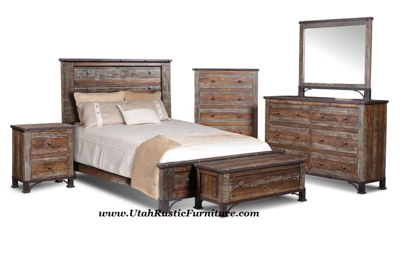 Featuring a beautiful turquoise rub accent and metal bands on every piece, the City Forge set adds a touch of rustic without going too far on the "log cabin" scale of things! We try to keep a Queen Bed on hand but other items are 7-10 weeks out. See below for additional pictures of Nightstands, Dressers, Chests of Drawers, Etc. For current options see the entire 2020 Horizon PDF Catalog