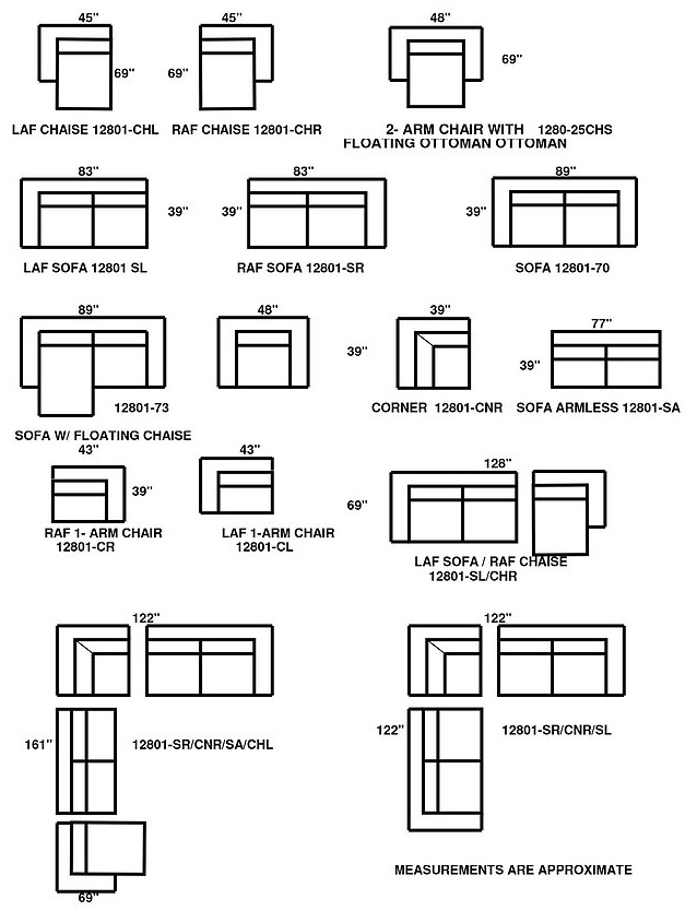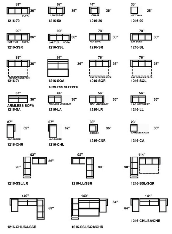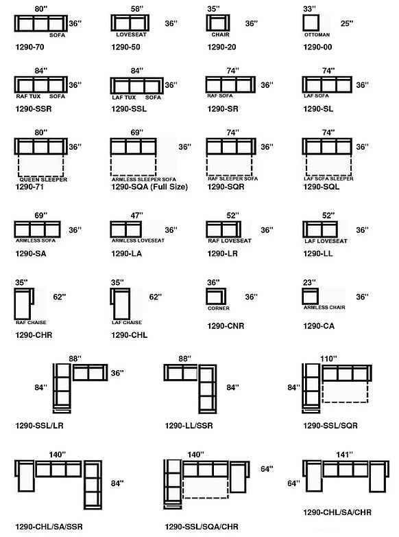 Click here for a schematic of all avail. pieces and dimensions for popular configurations!