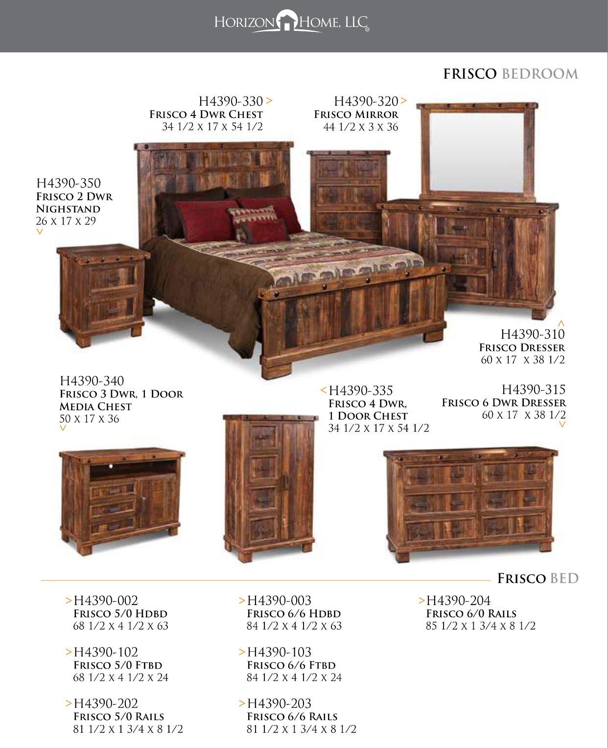 The Frisco Bedroom Set shown above by Horizon is still current but takes about 8 weeks to ship. Let us know if you needed pricing or eta estimates.