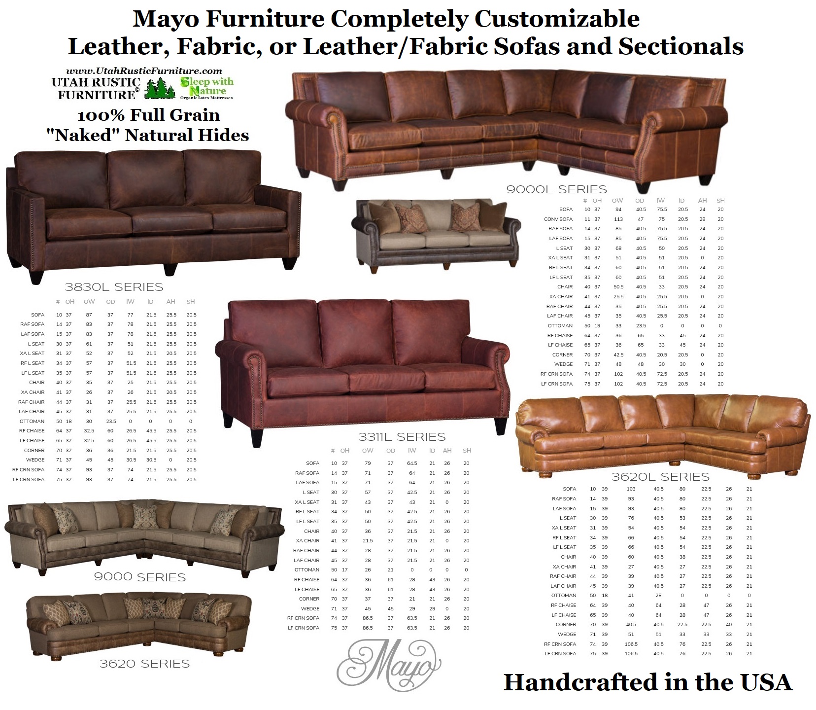 Mayo Rustic Top Grain Leather & Leather/Fabric Combination Customizable Couch Collections Mayo Furniture is built 100% in the United States with solid hardwood frames and features the highest quality customizable leather and fabric available on the market. These collections are available in a number of leather and fabric color options and feature an extended warranty! | |||