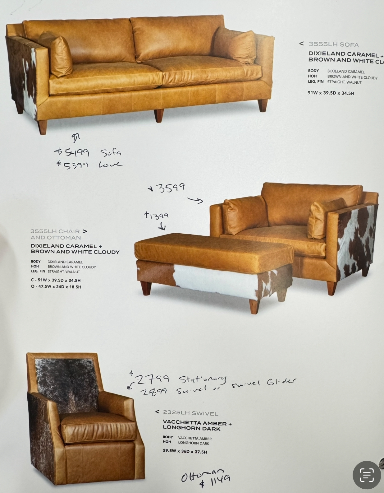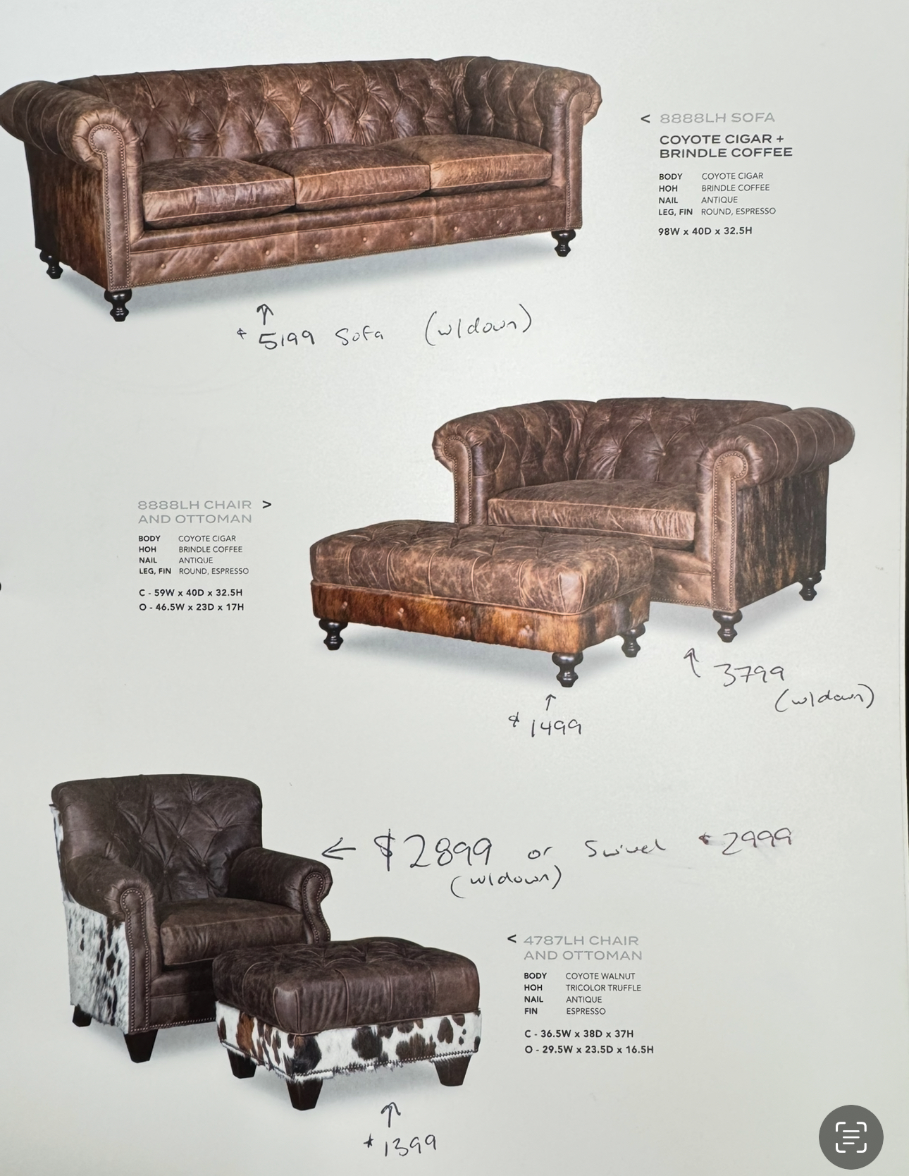 20% off MSRP for our current sale price! (Add $50 for ottomans). We're happy to offer high quality leather sets for a third