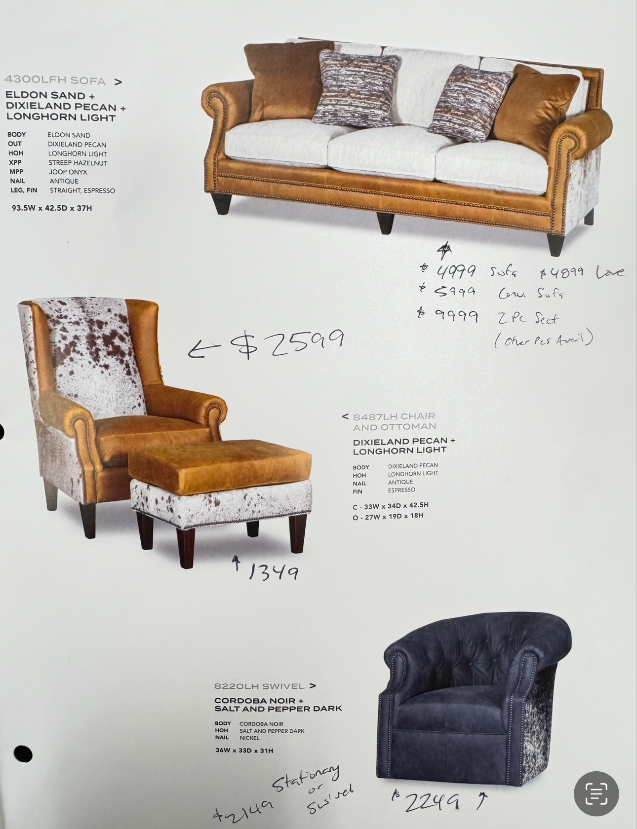 93.5"w Sofa MSRP $3099 Sale Pricing $2799