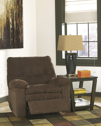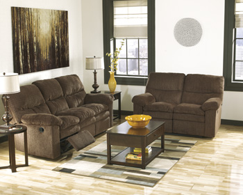 | With the comfort of the padded arms and seat cushions along with the lumbar support of the bustle back design, the “Laila-Espresso” upholstery collection an inviting contemporary design that is sure to fit comfortably within the décor of any home without sacrificing the comfort you deserve. Reclining Sofa 102"W x 40"D x 39"H Sale Price was Reclining Loveseat 66” W x 41” D x 43” H Sale Price was Rocking Recliner 41” W x 38” D x 43” H Sale Price was |