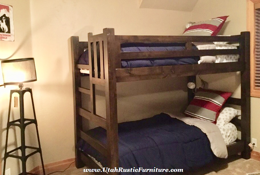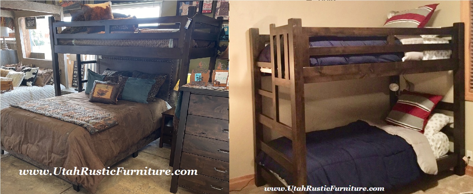 The Mountain Alder Collection is produced 100% here in Utah by local craftsmen and is completely customizable. Upgrading to the log style offers a more traditional rustic look while staying with strait posts invokes more of a mountain modern theme. All of the rails are made of 100% USA-grown Alder Hardwood (the entire bunk if staying with square posts)