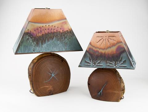 Medium and Small Mesquite Lamp w/Turqoise and Copper Shade