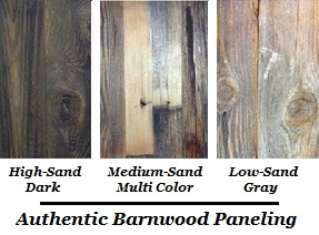 Colors: First choose your stain for the Posts/Trimming between Rough or Smooth Dark Stain, Medium Stain, or Golden Stain. Then choose your finish of Authentic Barnwood Panels out of High-Sand Dark, Medium-Sand Multicolored, and Low Sand Gray Options. Last if you want to add a color upgrade to your finish select from a Touch, Frosted, or Rubbed option in Turquoise, White, Red or other paint color for 15% more.