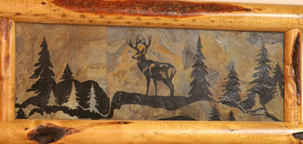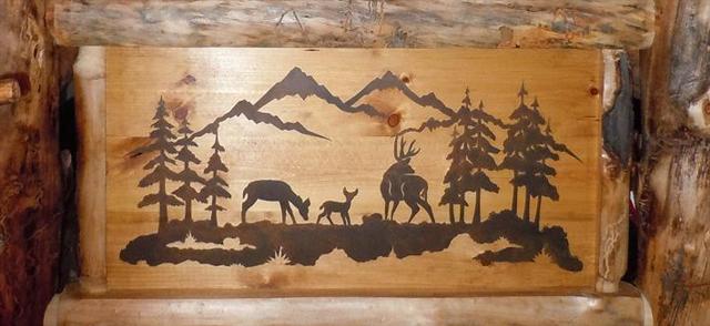 Laser-Engraved Tile Scenes Hand-Carved Wood Scenes (Only Avail. on Smooth Barnwood or Log Sets) Laser-Cut Metal Scenes
