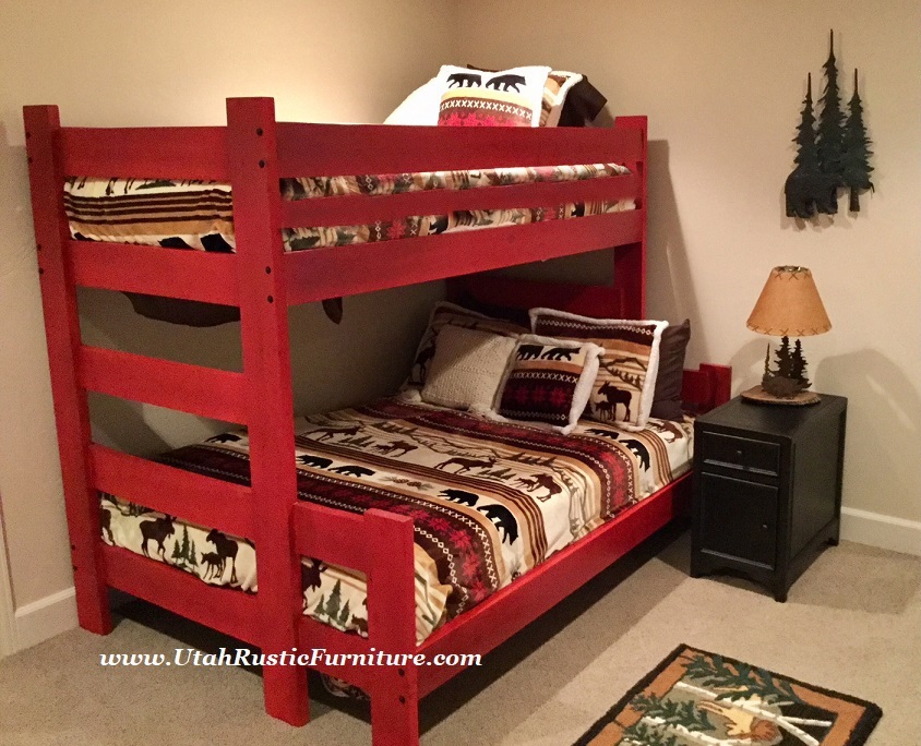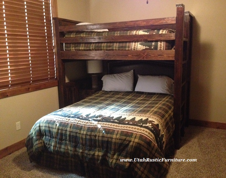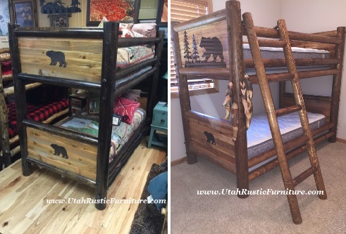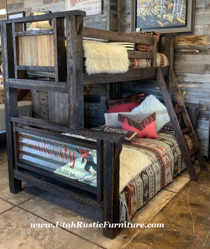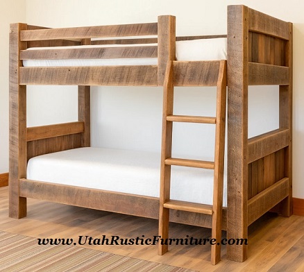 Rustic Barnwood and Log Bunk Beds Bradley's features the highest quality rustic log, barnwood, and solid wood traditional bunk beds. All of our custom handmade rustic bunk beds are available in any size up to a queen overhead and a king underneath for an up-charge. For any custom pricing, contact: 801-484-1007 or orders@utahrusticfurniture.com |