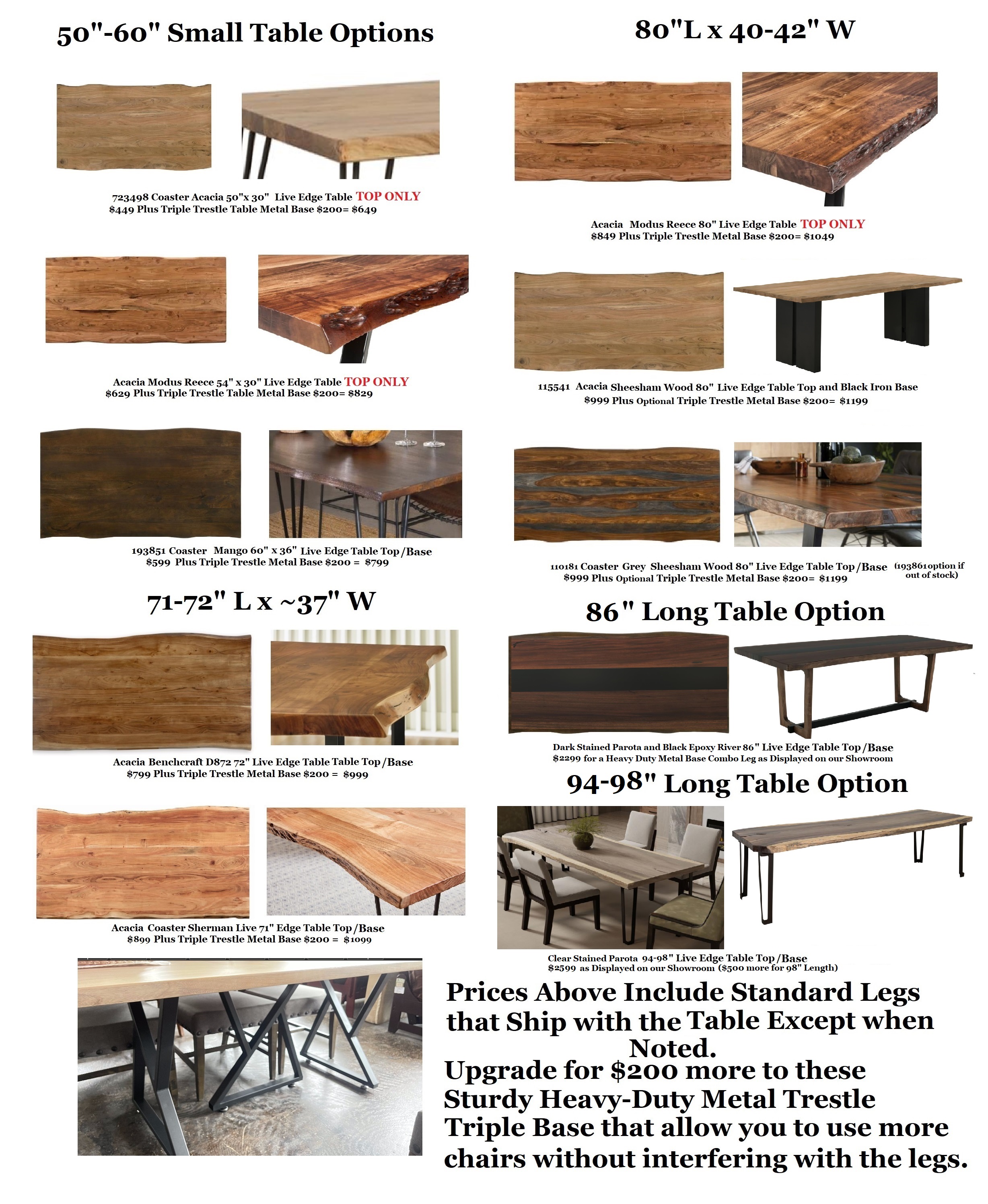 Live Edge Dining Table Top 86' L x 40 $2299 w/Heavy Duty Trestle Legs or Industrial/Pencil 4 Legs