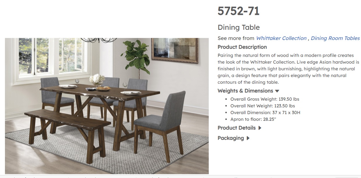 Our Dining Collections consist of hardwoods and are built to withstand years of use. Many of these sets are available to ship within a month. On this page we feature our most popular sets but for the entire product line and new additions yet to be added here visit www.coasttocoastaccents.com or www.modusfurniture.com
