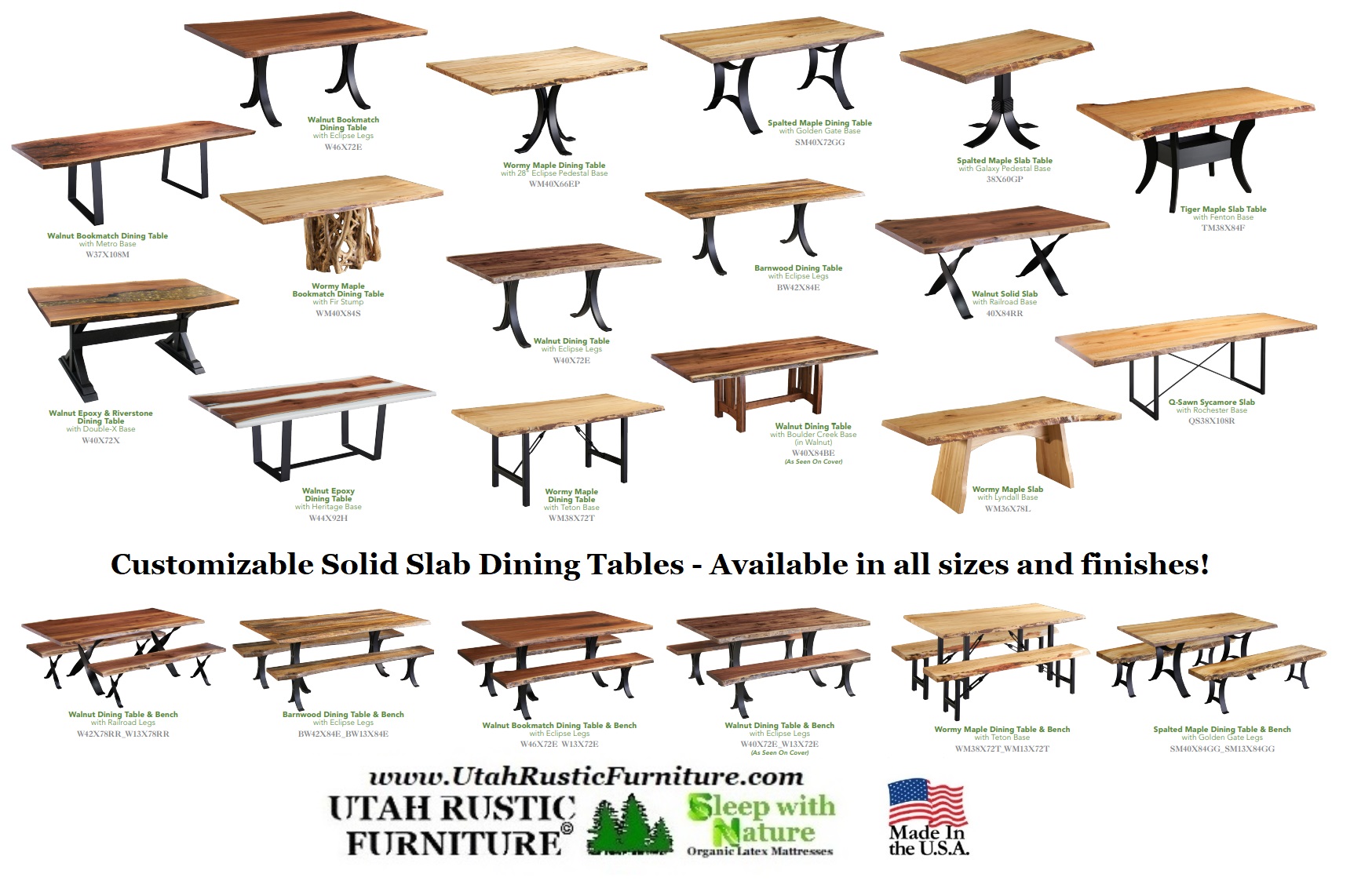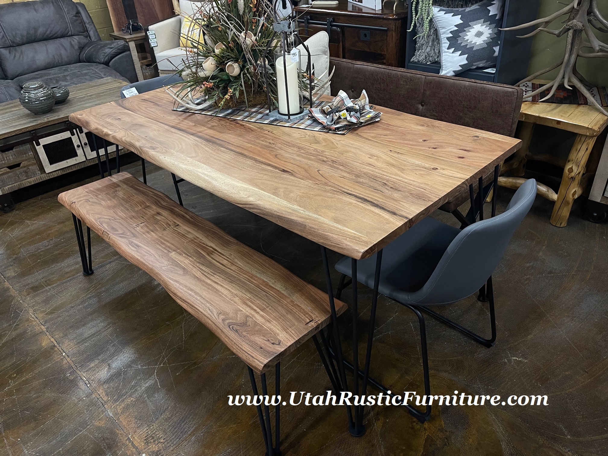 Coaster Mountain Modern Sheesham Live Edge Dining Table, Chairs and BenchCustom Live Edge Maple or Sycamore Slabs - Approx 40" w $1399 Top Only