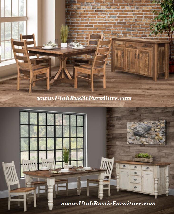 Bradley's is pleased to offer the largest selection of Rustic Dining Room sets in the state. These sets are constructed of Solid Woods often from the Wasatch Mountain Range right here in Utah consisting of Premium Oak or Alder Hardwoods, Authentic Reclaimed Barnwood, High-Altitude Spruce, Lodgepole Pine, Utah Aspen, and more! With many different collections to choose from and hundreds of customizable options (each of these sets can be ordered to size style and color), the possibilities are truly endless! Also, make sure to visit our manufacturer site; Urban Barnwood Furniture for more styles and color options on display! For any custom pricing, call or email: