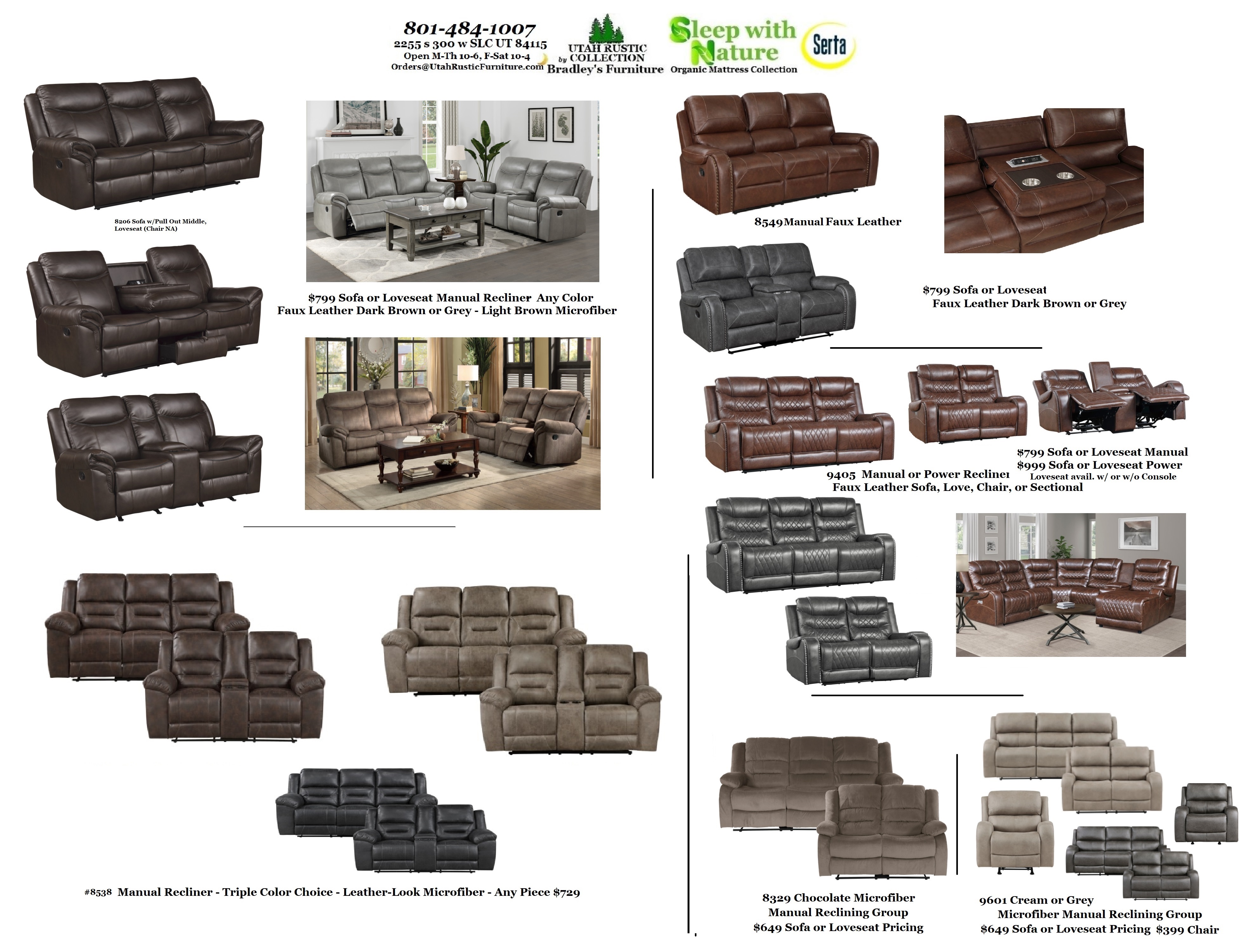 (ETA 3-4 wks to order - our 8517 Brown Power Reclining and the 9488 Faux Leather Brown (Love Seat N/A) is on display today!