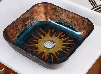 Glass Sunburst Sink Square $339 16” Sq x 5.5” H*