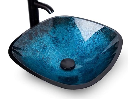 Glass Ocean Sink Square $199 16.5” Sq x 5.5” H*