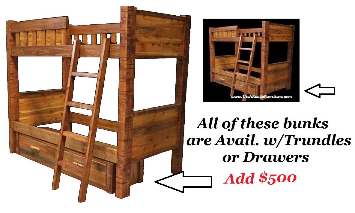 -Features 3 1/2" Posts and Strong Support Slats! -Includes Light Stain Finish. Add 5% for Dark or Two Tone Stains. Choose from Distressed (Shown) or Smooth Posts. Add $100 for Built-In Ladder or $500 for Drws or Trundle.