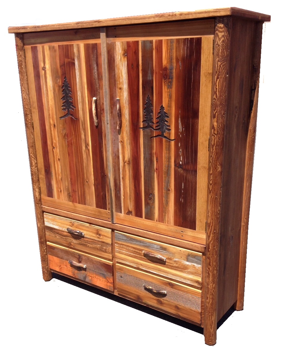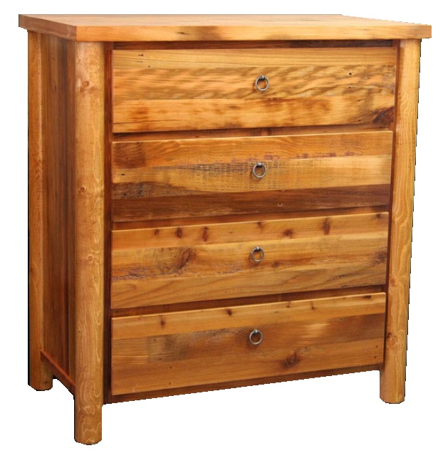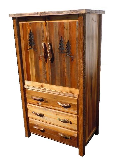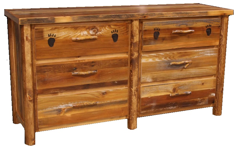 21" sq x 28" h* Features Premium Drawer Glides and 6 1/2" Drawer Faces, Barnwood Panels, and 1 Bear Paw Carving