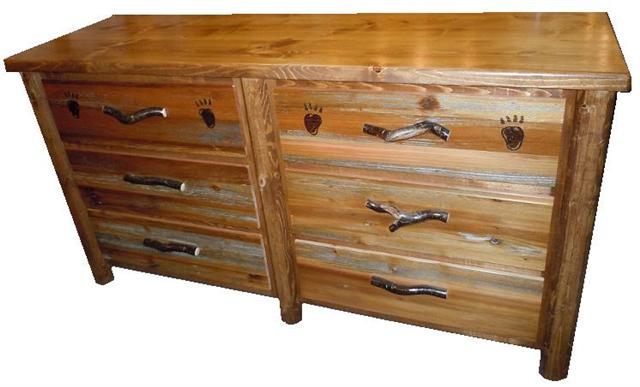 Bear Paw Barnwood Custom 6 Drw 1 Door Dresser w/Bear Carving