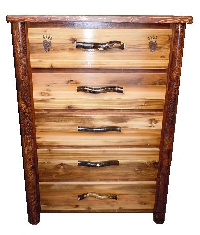 Add $100 for 4 Pine Tree, Bear Paw, or Moose/Elk Hoof Carvings on the top drawers or $120 for Bears.