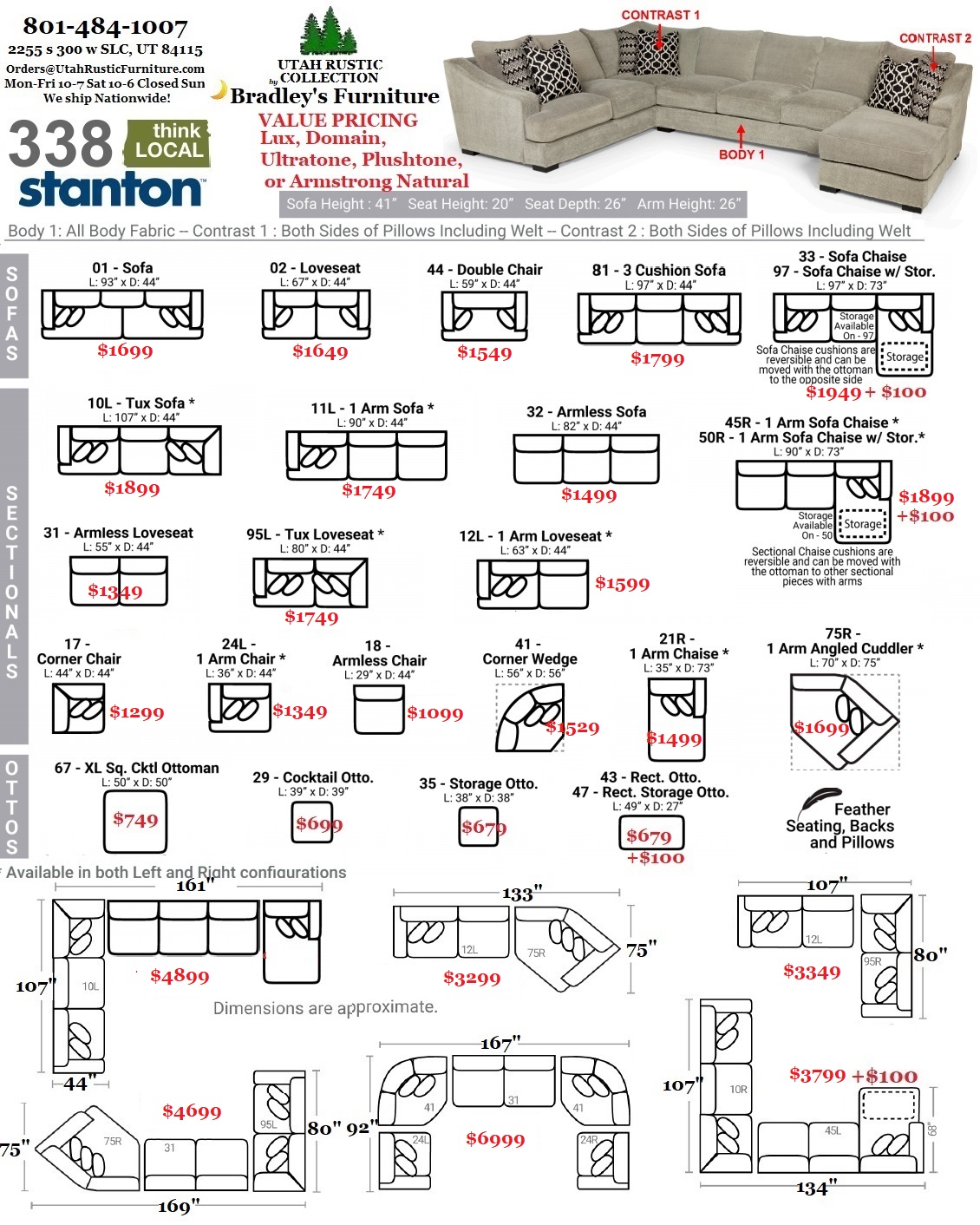 Visit www.stantonsofas.com for additional styles, fabric and leather options, and customizable sectionals and feel free to email or call us with any questions regarding shipping and pricing!