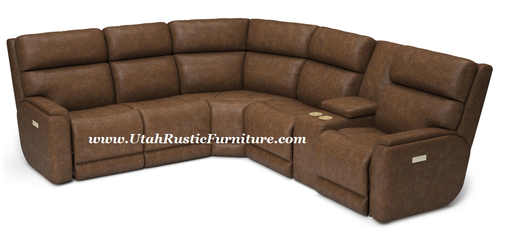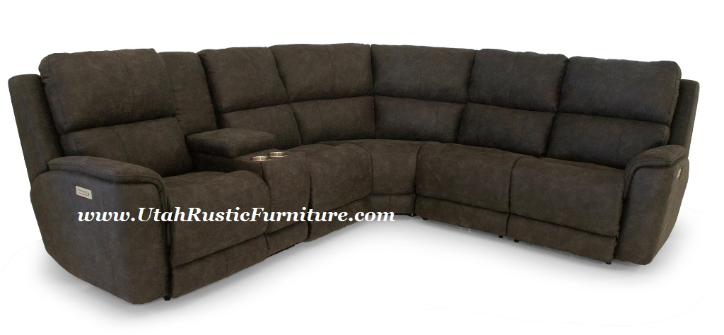 #843 As Shown 119" x 106" Reversible 6 Piece w/2 Power Recliners Price: $5999 $4999 - Shown in Deschutes Ink