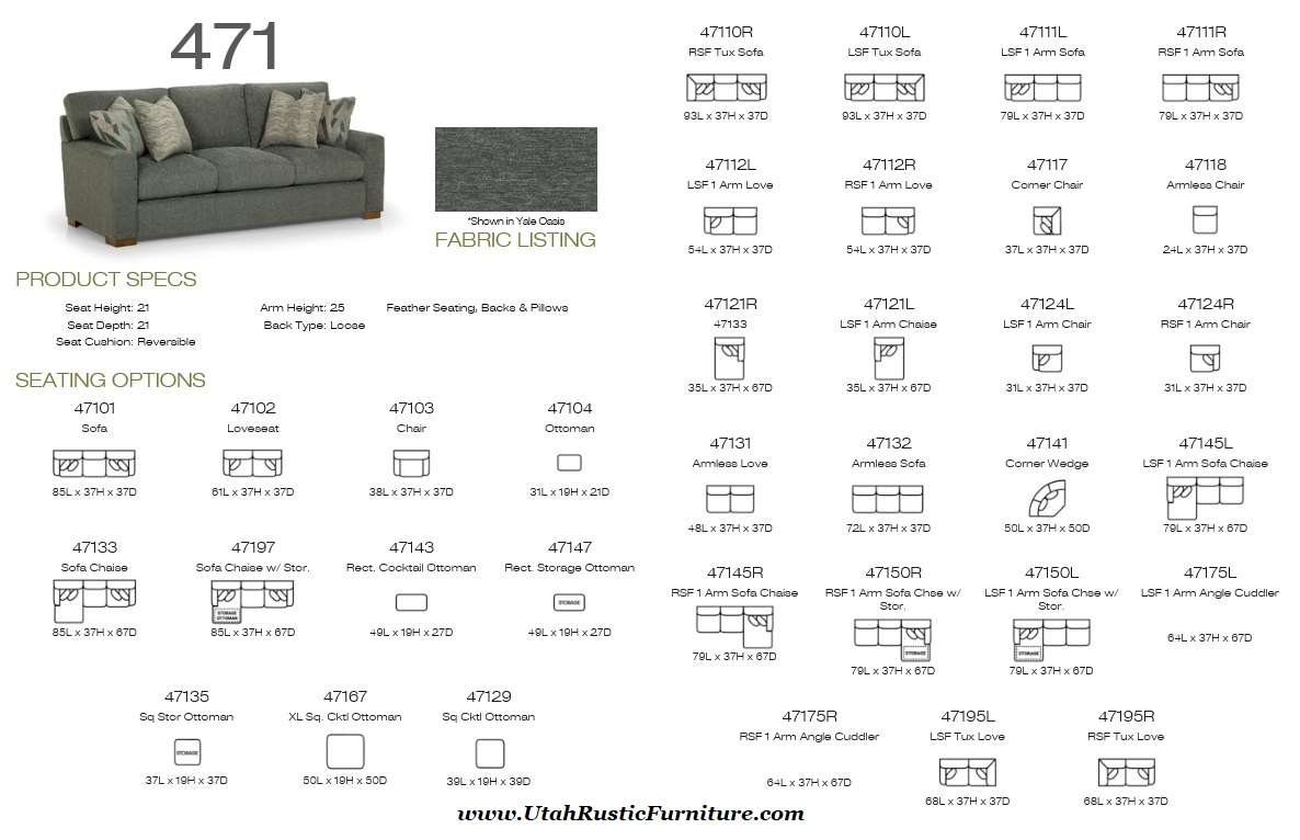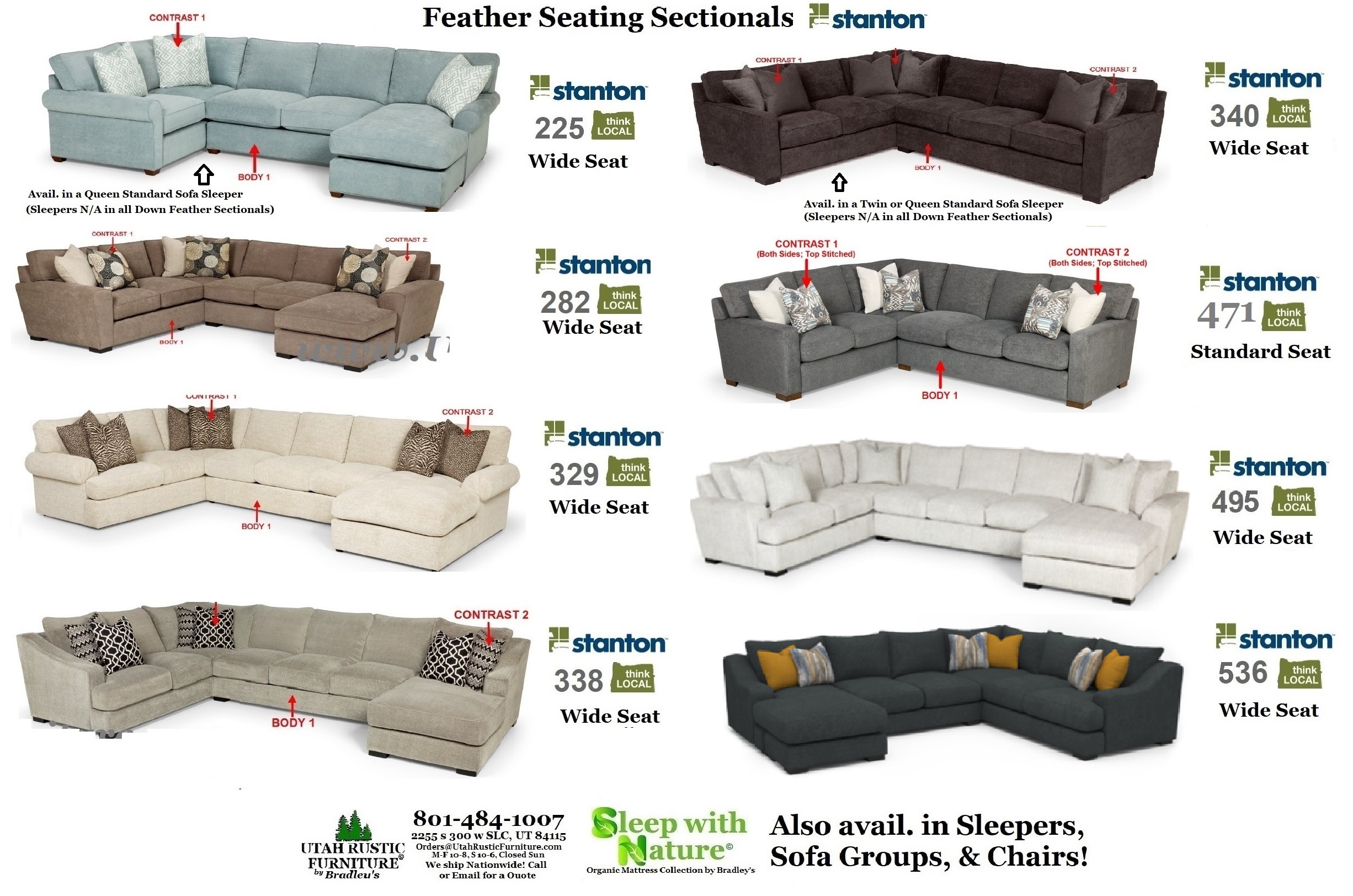 These 8 Down Feather Sectionals are also avail. in Sofas, Loveseats, Chairs, (and a few of them Sleepers... but only without down feather) . All but the 471 feature wide seating. For smaller rooms the 471 is a perfect fit - see the schematics here.