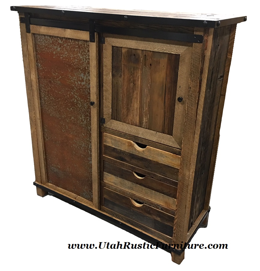Western Plains Barnwood Custom Metal Sliding Door Gentleman's Chest - Custom Colors and Dimensions Avail. on Request