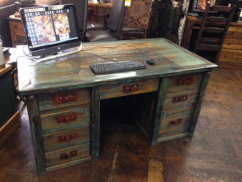 Wrap Around Western Plains Turquoise Executive Desk and Hutch