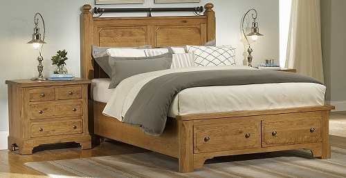 100% Solid Oak Hardwood from the Appalachian Mountain Range on every piece. Burnished knob pull hardware, solid premium wood-on-wood drawer construction, functional under bed storage drawer options, and more add to the unique styling of this hand made set. Vaughan Basset sets are milled and constructed right here in the United States by professional craftsmen. Each Vaughan-Bassett collection sold helps our local economy and provides the best quality available on the market!