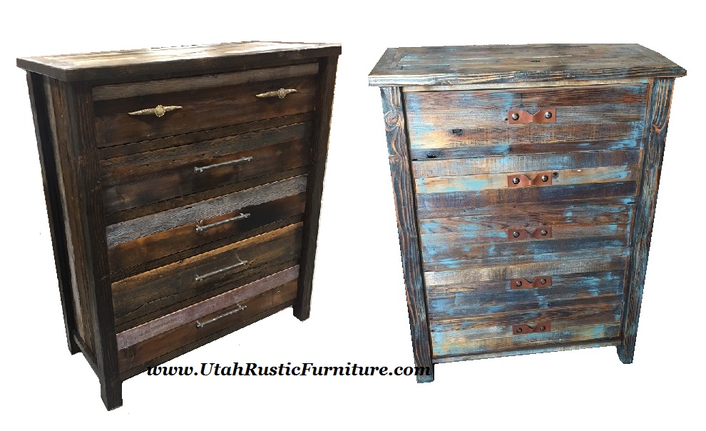 - Custom Sizes Available. Shown Top Medium Stain Smooth/Med Multicolor w/Leather Handles (Top Right w/Metal Accent Drw), Bottom Left Dark Stain Smooth/High Sand Dark w/Custom 8" Rod Handles and Antler Branches, Bottom Right Touch of Turquoise Smooth (+15%)