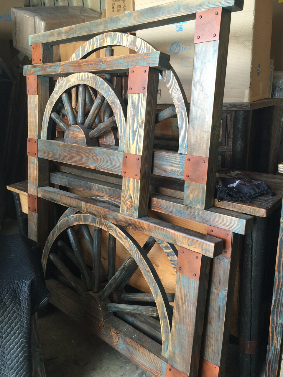 Barnwood Wagon Wheel TwinXL/Queen Bunk