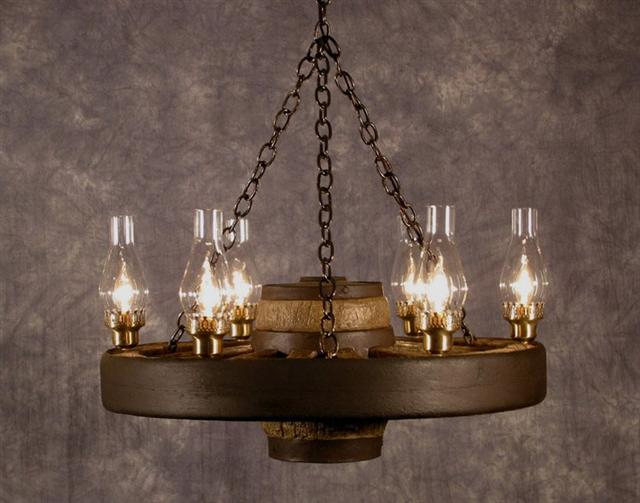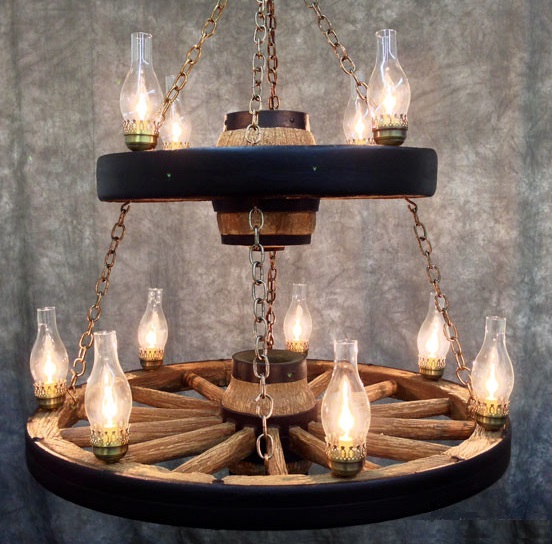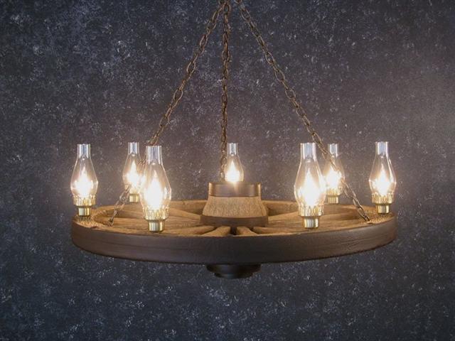 Built by hand and manufactured here in Utah, each Wagon Wheel Chandelier is built of durable life-like resin designed to last a lifetime and look great for decades to come. These are even customizable if you have a specific configuration or request, feel free to ask! Common changes include putting lights both down and upward facing. Call or email for a quote and timeframe. Most are built and ready for pick up or to be shipped within two or three weeks. These come with 3' of Antique Bronze or Black Chain and a metal mounting cap. Additional chain can be purchased for $10 a foot on request.